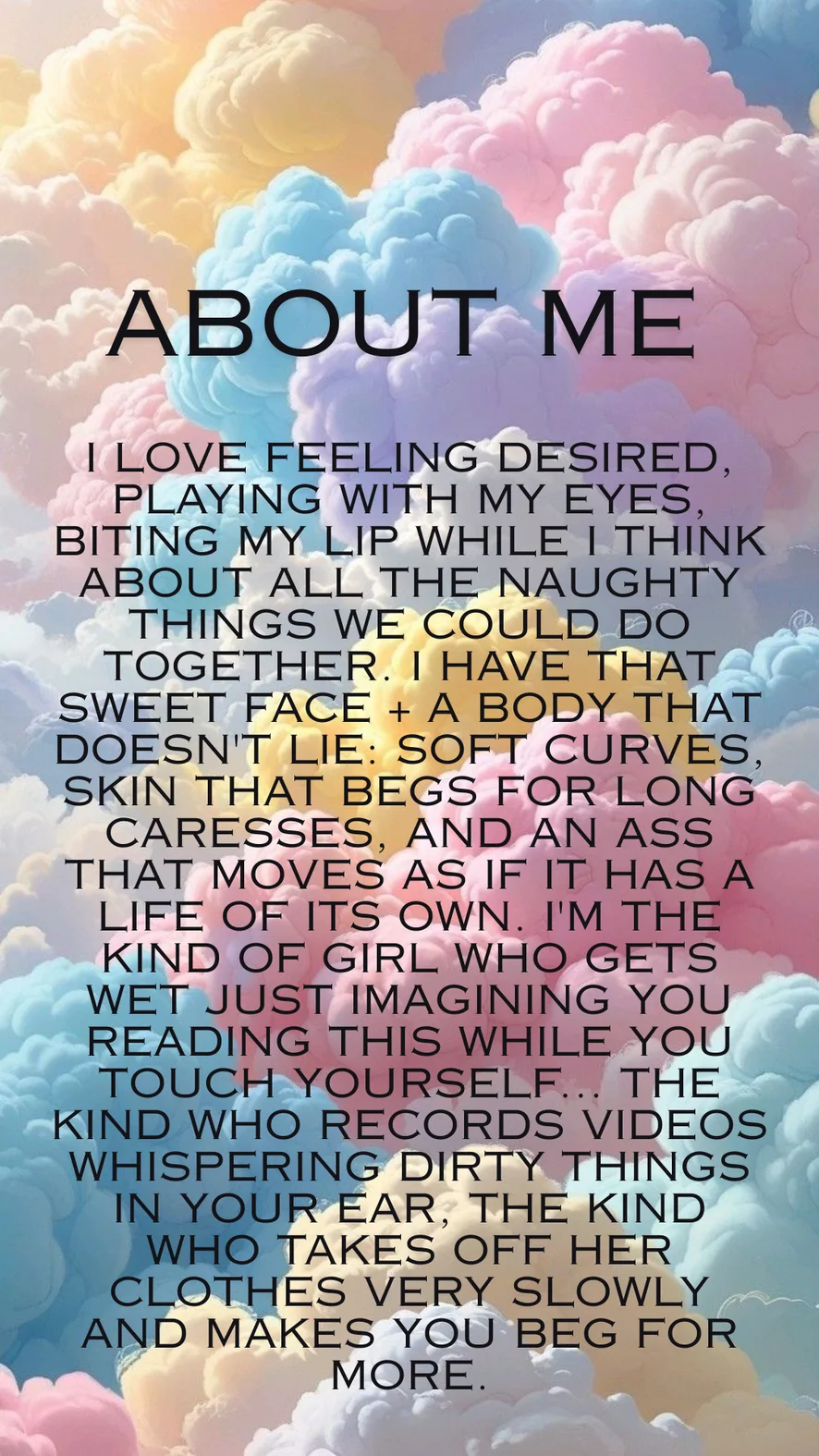 Ahegao, Ao ar livre, Amante, Capô de fusca, Avaliação de pintos, Fetiche por pés, Exibicionismo, Mandar bater uma, Massagem, Escritório, Punheta, Pegging, Salto alto, Topless, Rebolando, De quatro, Tapas, Dança erótica, Penetração com dedos, Dildo ou vibrador, Linguagem explícita, Striptease, Sentada na cara, Masturbação, Peitinhos, Masturbação com os pés, Espiadinha por baixo, Ioga, Anal, Chuveiro, Gozada na cara, Garganta profunda, Humilhação, Atuação, Anais, Brinquedos sexuais, Brinquedos para mamilos, Orgasmo, Hardcore, Ejaculação feminina, Cavalgada